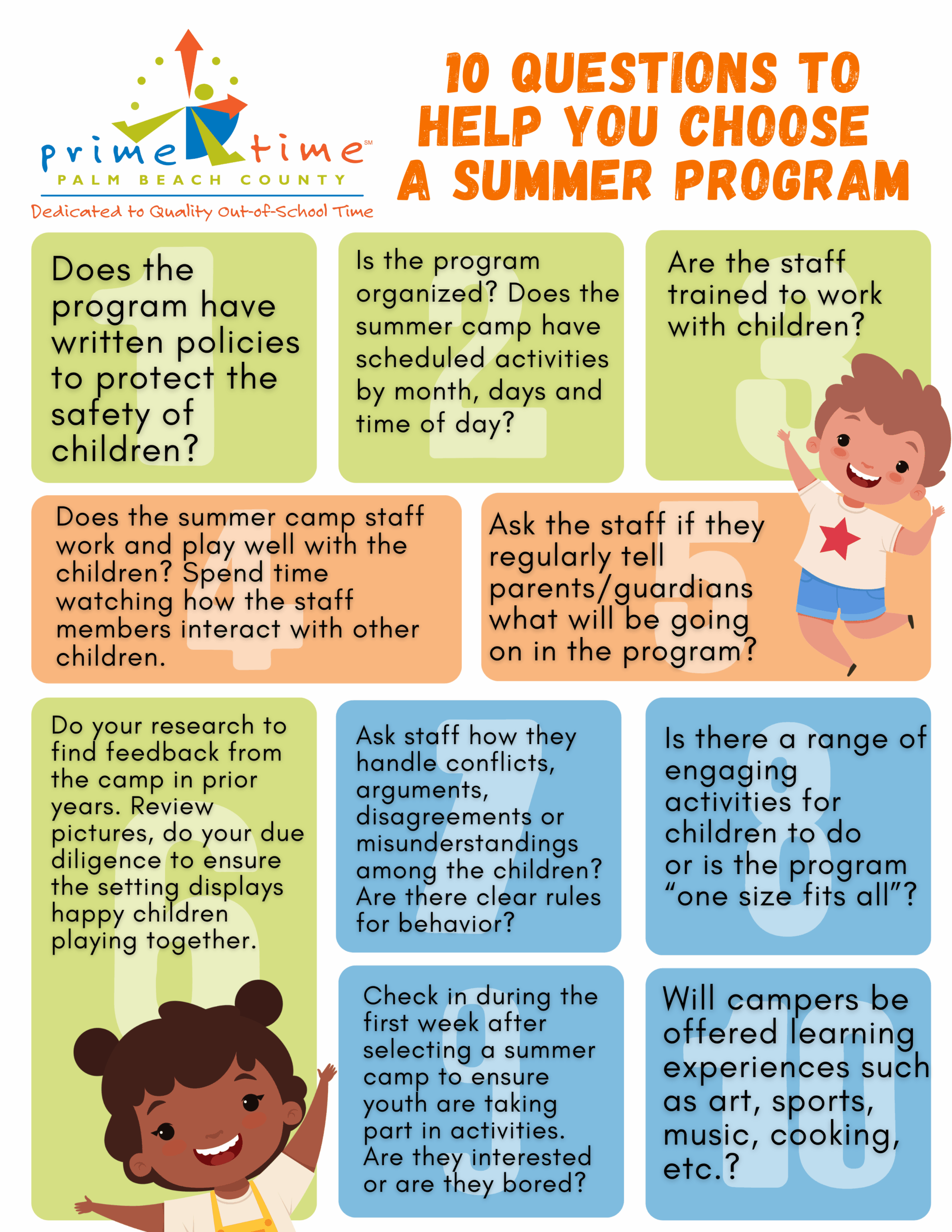 Prime Time Palm Beach County (PTPBC) is a nationally recognized nonprofit dedicated to ensuring that every child and youth has access to high-quality out-of-school time (OST) programs that support their academic, well-being and lifelong success. Prime Time provides resources and supports to afterschool and summer programs in Palm Beach and Martin Counties to help deliver high-quality programming that allows children to thrive socially and academically.